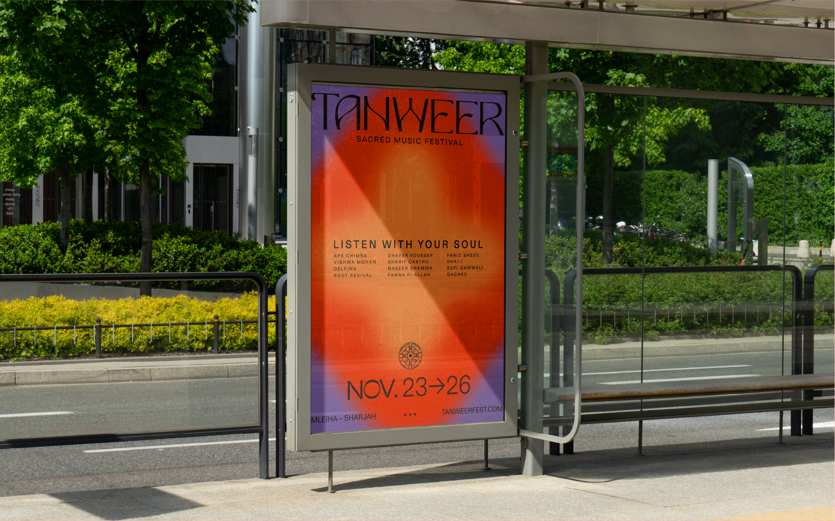 Tanweer Sacred Music Festival was a unique event which was new to the region and novel in its content. It launched with the intent to offer the region and the world an experience unlike any other: immersive, holistic, and truly multi-sensorial. To match its vision, it was essential to introduce the festival with a distinctive and impactful visual identity that set it on a level of its own.